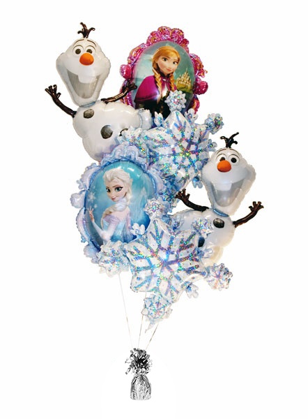 Frozen Birthday – Don’t let this balloon bouquet go! An assortment of mylar shapes from the hit Disney movie Frozen arranged on our signature balloon cluster base. Whether they are an Anna, Elsa or Olaf person, this balloon bouquet will freeze them with excitement.