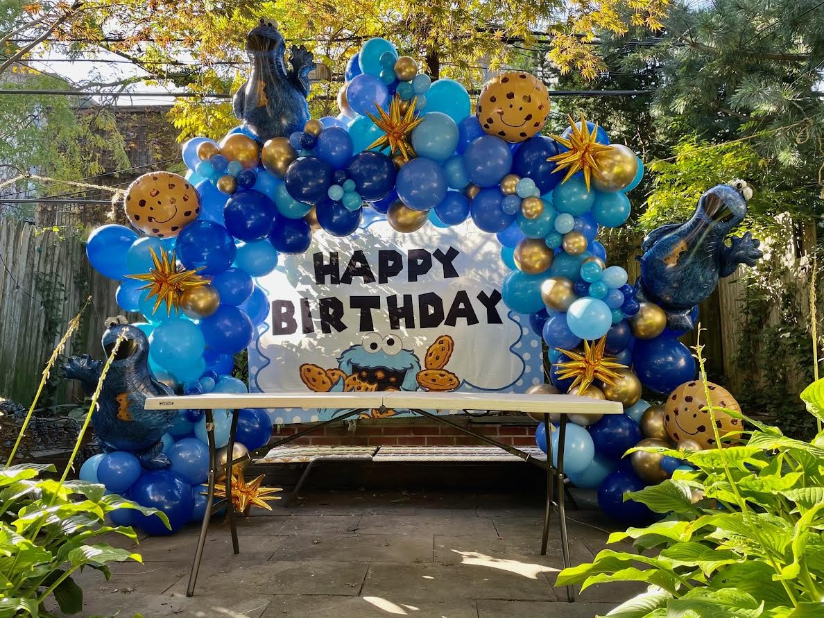 Cookie Cookie Cookie! Our Cookie Monster balloon archway is amazing. Created using Cookie monster balloons, and cookie shape balloons. Can be customized for any character.