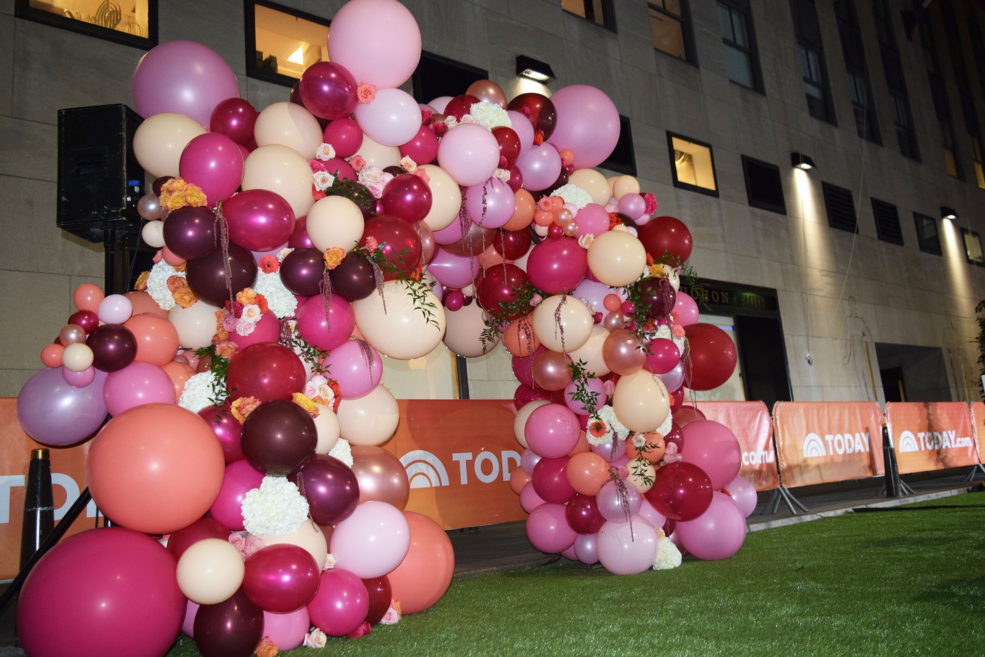 One of our favorite designs. With floral accents, shades of pinks, peach, and ivory balloons create this very pretty design. Designed and installed for The Today Show featuring today’s hottest wedding trends.