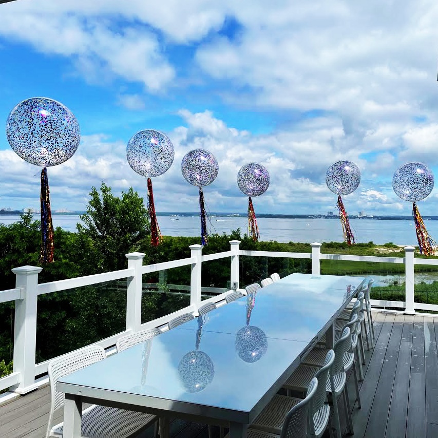 A very pretty design suitable for any affair. Our Free Floating Confetti Waterfall balloons are UNWEIGHTED and designed to be tied in locations around your venue. Created using our perfectly clear 3′ balloon filled with your choice of color confetti. Complete with flowing mylar tail. Lasts for multiple days and available in many colors!