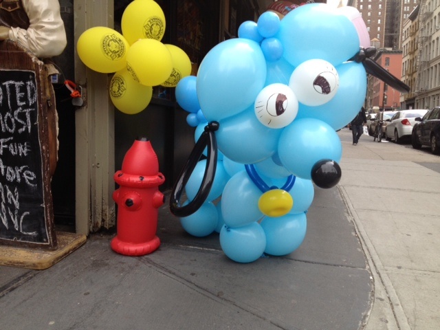 What a friendly puppy! This dog may be blue, but he’s sure to cheer you up! Can be made in any color, stands 4 feet tall, and lasts for several days.