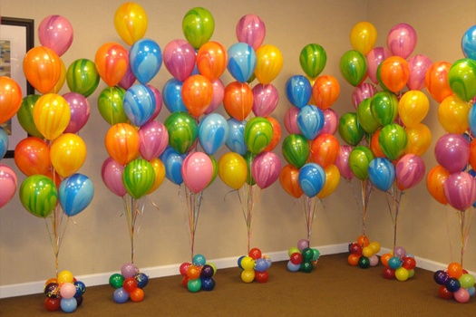 13 Tye Dye balloons arranged on a mini balloon base. Stands 8′ tall. Extend your balloons float time with our HiFloat option!