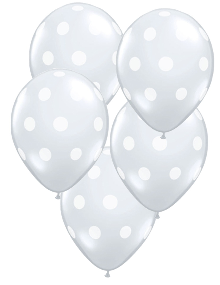 Five Latex Balloons with White Polka Dots.