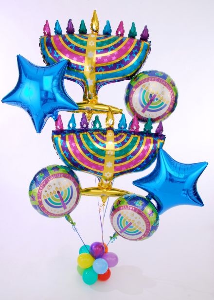 Celebrate the festival of lights with our 8 Crazy Nights balloon bouquet! Stands 7 feet tall and lasts for multiple days indoors.