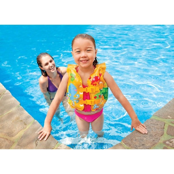 help your little one learn to swim by helping them become comfortable in the water. the intex tropical buddies swim vest is a great swim training aid to help give children confidence in the water.
