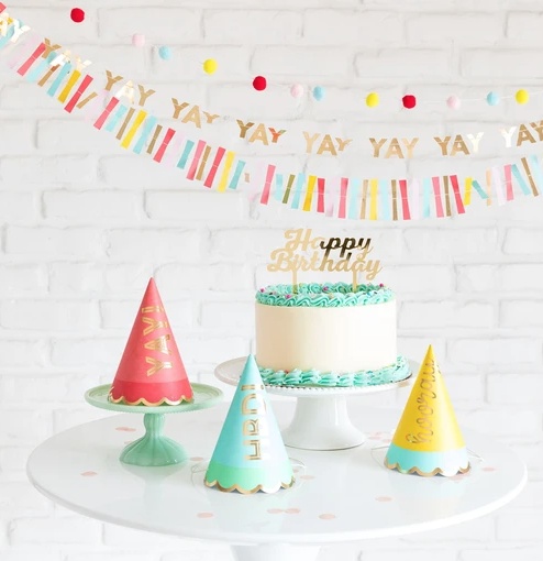 Celebrate the day with this bright and festive mini banner set. These colorful fun-sized banners will transform any venue into the perfect party space. No party is complete without lots of banners, so may we suggest combining this banner set with our HOORAY and HAPPY BIRTHDAY banners for the perfect happy day!