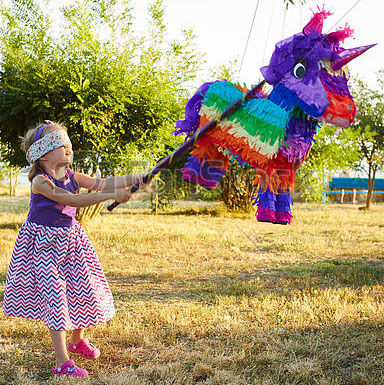 - Have friends take turns to try and break the unicorn pinata to release all the wonderful goodies inside