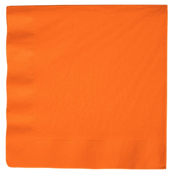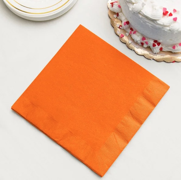 Dinner napkins in Orange Color make a great addition to your special event. These 6.5 inch by 6.5 inch, 2-ply napkins are designed to use with beverages and match corresponding colors in cups, plates and tableware. Each pack has 20 napkins.