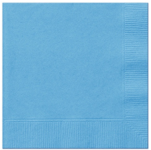 Beverage napkins in Powder Blue Color make a great addition to your special event. These 5 inch by 5 inch, 2-ply napkins are designed to use with beverages and match corresponding colors in cups, plates and tableware. Each pack has 20 napkins.