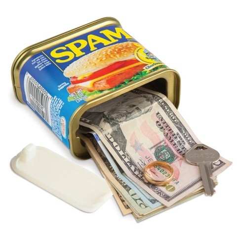 SPAM® Classic Can Bank. AN AUTHENTIC 12 OUNCE CAN WITH SLOT ON TOP FOR DEPOSITING MONEY.