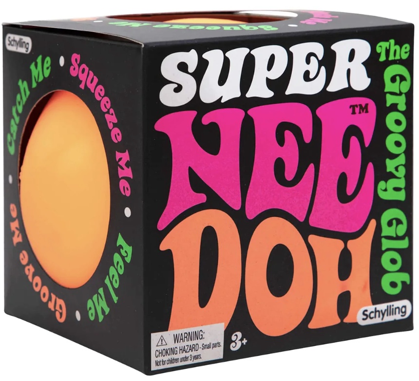 The Groovy Glob is all grown up; the bigger the Needoh, the bigger the squish! Super NeeDoh comes in at twice the size of Classic Needoh, doubling the squeeze that soothes your soul. Give Super NeeDoh a good squish, pull, or smush and enjoy a satisfying tactile experience. Each Super NeeDoh is filled with a non-toxic, dough-like compound that always returns back to its original shape.