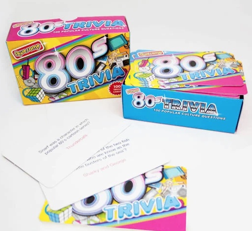 Pull on your leg warmers, back comb your hair and get ready to test your knowledge of the outrageous decade we all secretly love, with our set of 80’s Trivia Cards! Test your friends on topics such as the music, fashion, films and TV of the most talked about decade!
