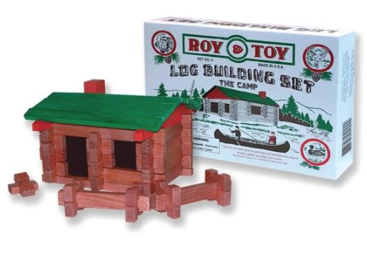 Just as fun as when introduced in the 1930s, original Roy Toy building sets and packaging remain the same as they were when your parents’ or grandparents’ were kids! When you lift the box top and smell the wonderful scent of all-natural pine wood, you’ll know this nostalgic set is still made with care by a family owned company, using all wood, dyed with a food-approved dye, and sanded to a smooth finish. The wooden toy building log set includes 37 pieces, with everything needed to build a nostalgic miniature log cabin. Building directions are included, and this solid wood set is packaged in a colorful, printed box. The best gift a parent or grandparent can give is time spent together, and this nostalgic toy kit has everything you’ll need to build lifetime memories with someone you love. Roy Toy Log Building Sets are interchangeable, so The Camp is a great addition to The Farm (sold separately). Ages 3 and up. SMALL PARTS. Not for