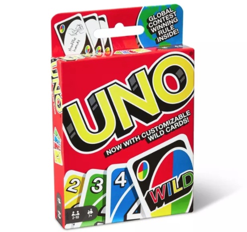 UNO™ is the classic and beloved card game that’s easy to pick up and impossible to put down! Players take turns matching a card in their hand with the current card shown on top of the deck either by color or number. Special action cards deliver game-changing moments as they each perform a function to help you defeat your opponents. These include Skips, Reverses, Draw Twos, color-changing Wild and Draw Four Wild cards. You’ll find 25 of each color (red, green, blue, and yellow), plus the eight Wild cards, inside the 108-card deck. If you can’t make a match, you must draw from the central pile! And when you’re down to one card, don’t forget to shout “UNO!” The first player to rid themselves of all the cards in their hand before their opponents wins. It’s Fast Fun for Everyone!™ Includes 108 cards and instructions. Colors and decorations may vary.